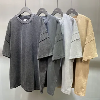 Custom Men's Mid-Weight Vintage T-Shirt 100% Cotton Oversized Acid Washed Short Hip Hop Solid Digital Printing 200-270 GSM